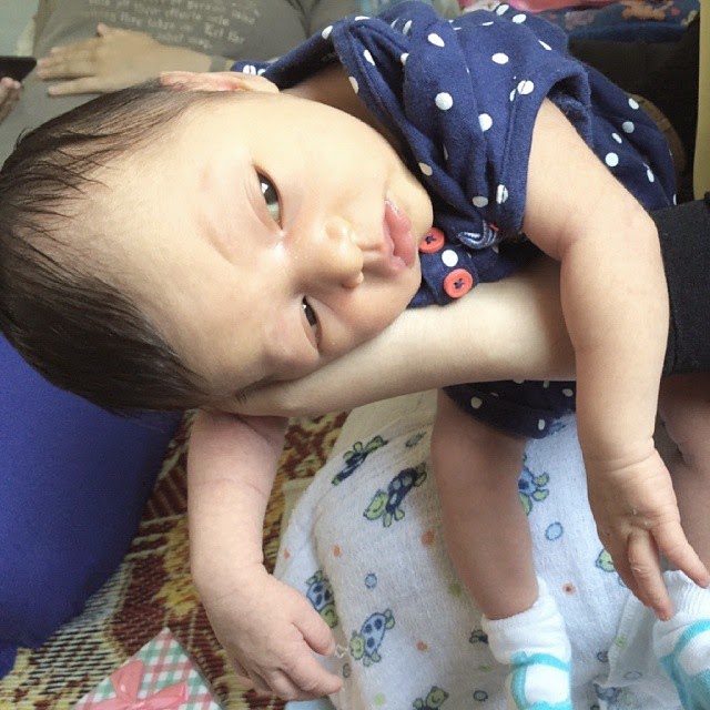 aku dah buat esei ni lebih sepurnama baru dapat post sebab banyak gangguan budak kecik nak susu. hehe. Alhamdulillah Lily ada jaundice sikit tapi terkawal. jemur punya jemur hamik ko, gelap dah kulit anak aku. dah boyish sikit muka dia. sudahlah begitu, potostat pula muka ayah dia. haiyo. pakistan mari lah ceritanya kan. takpe, bulu mata pastikan melentik 45 degree ye Lily kalau dah alang-alang muka ayah tu. hiks.